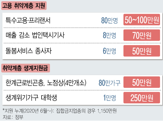▷한계근로빈곤층 80만 가구 한시생계지원금 50만원